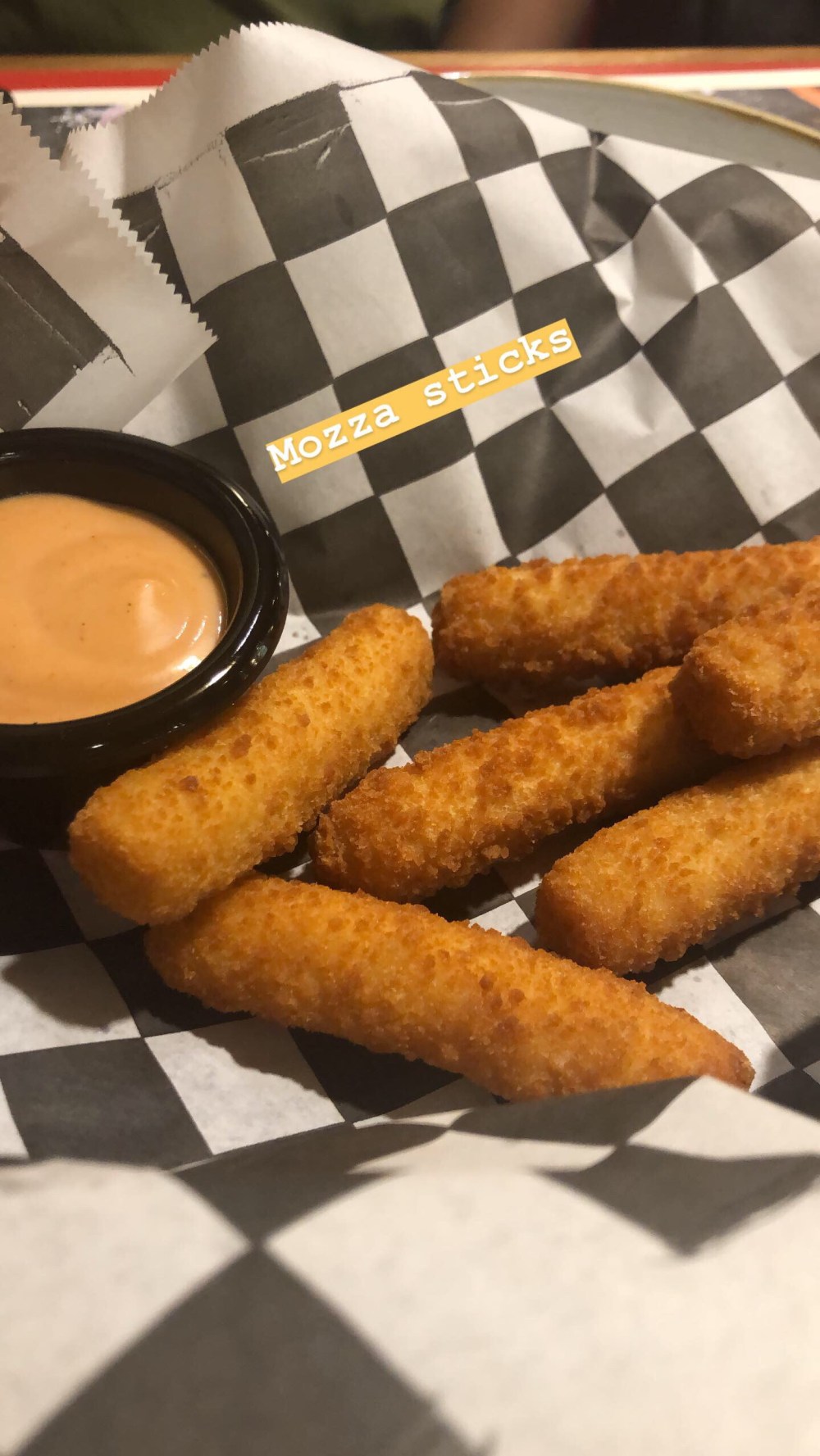 j ai donc opté en starter pour des mozzarella sticks et en plat pour le bbq burger au bacon de boeuf.