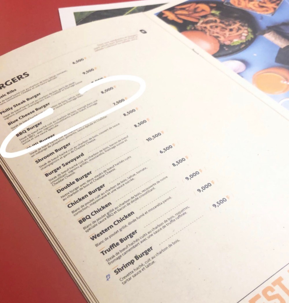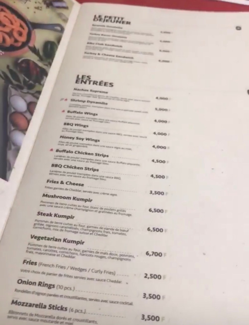 Les mozza sticks était bien cheezy et bien croustillantes et le burger, un pur délice, un des meilleurs burgers mangés à Abidjan jusqu’à présent; Le pain était top, la viande bien cuite légèrement fumée et ce bacon de boeuf similaire en goût au bacon de porc et dont la cuisson a été parfaitement réalisée.