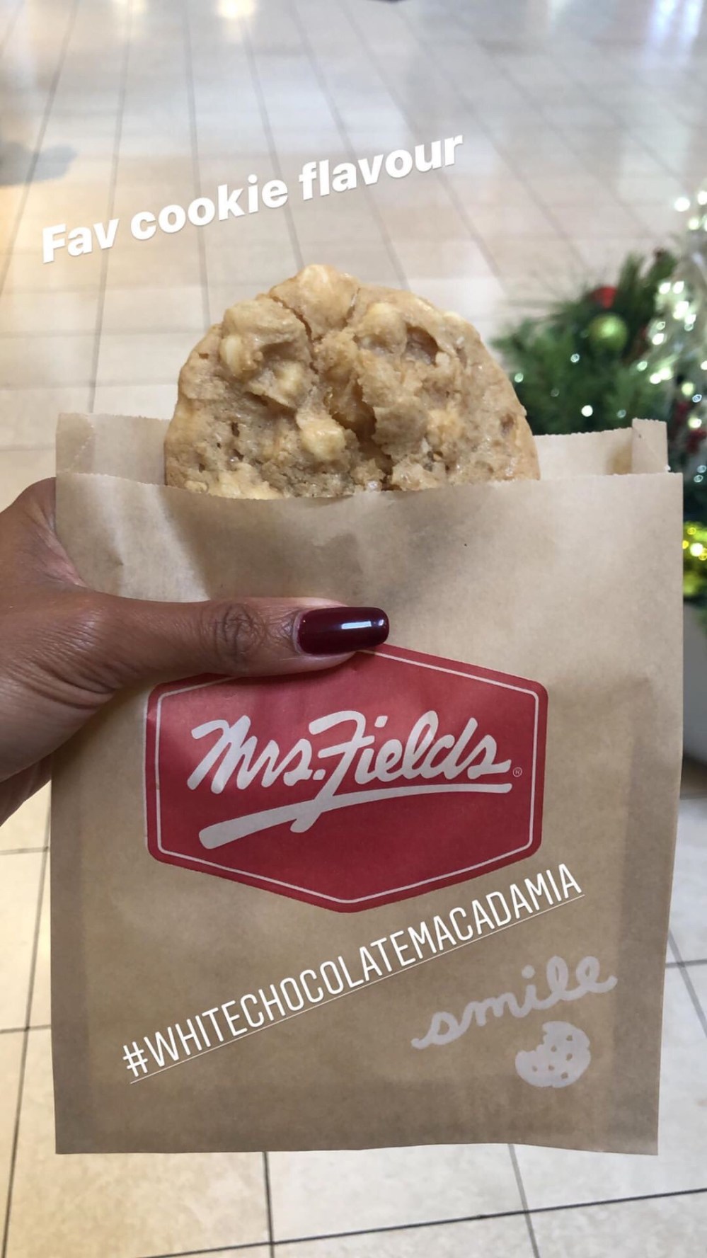 -Les cookies chocolat blanc noix de Macadamia de Mrs Fields qui sont tout juste délicieux.