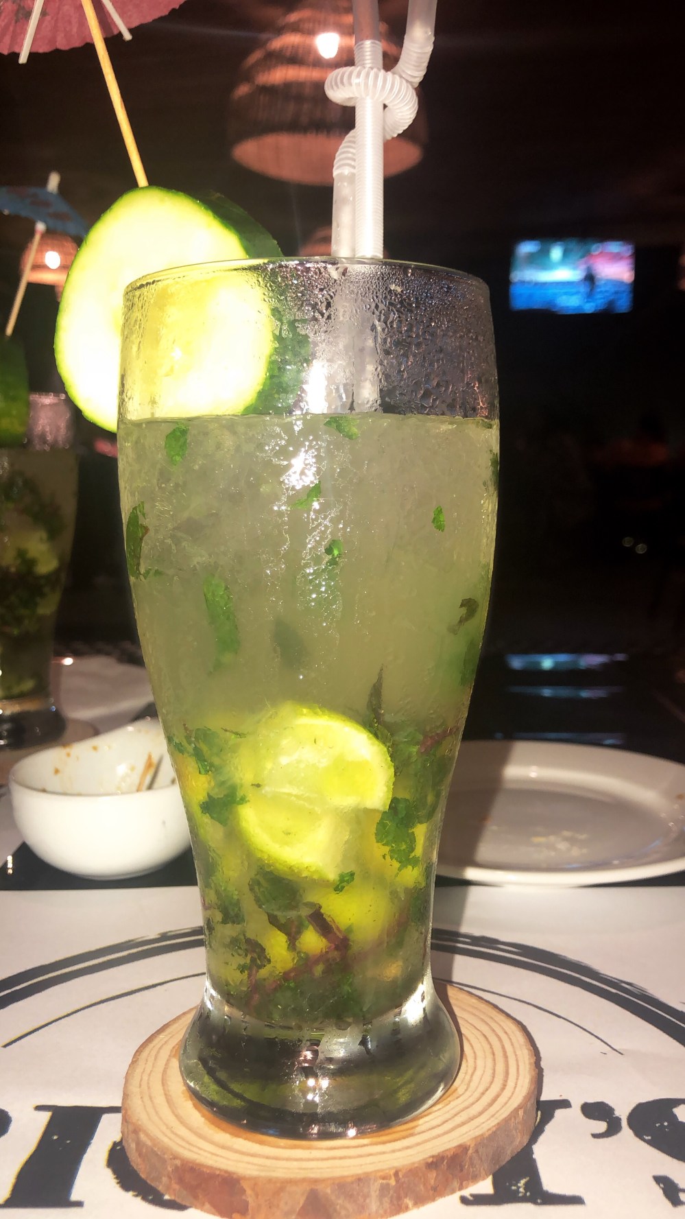 J ai accompagné le tout par un mojito, bon, mais super dosé, ça m a mis K.O direct.