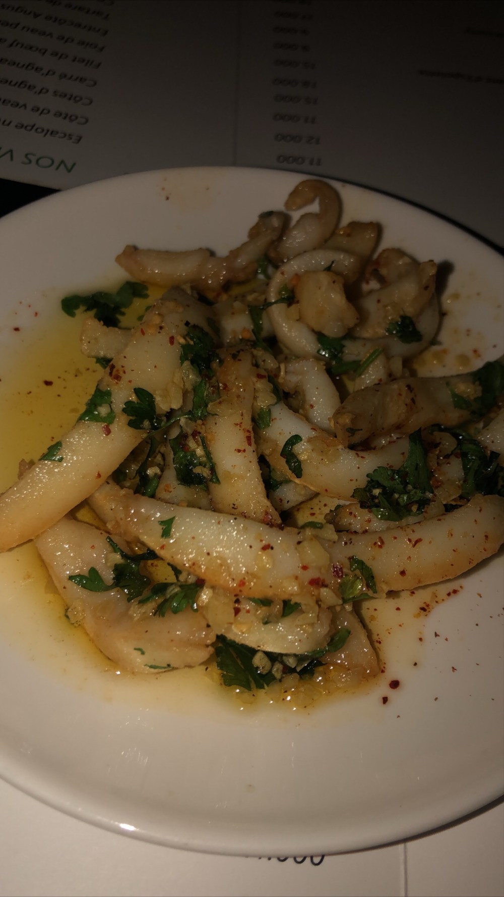 En apéritif, nous avons eu une assiette de calamars sautés qui était très bien assaisonnés et bien relevés, cela était une très bonne entrée en matière.