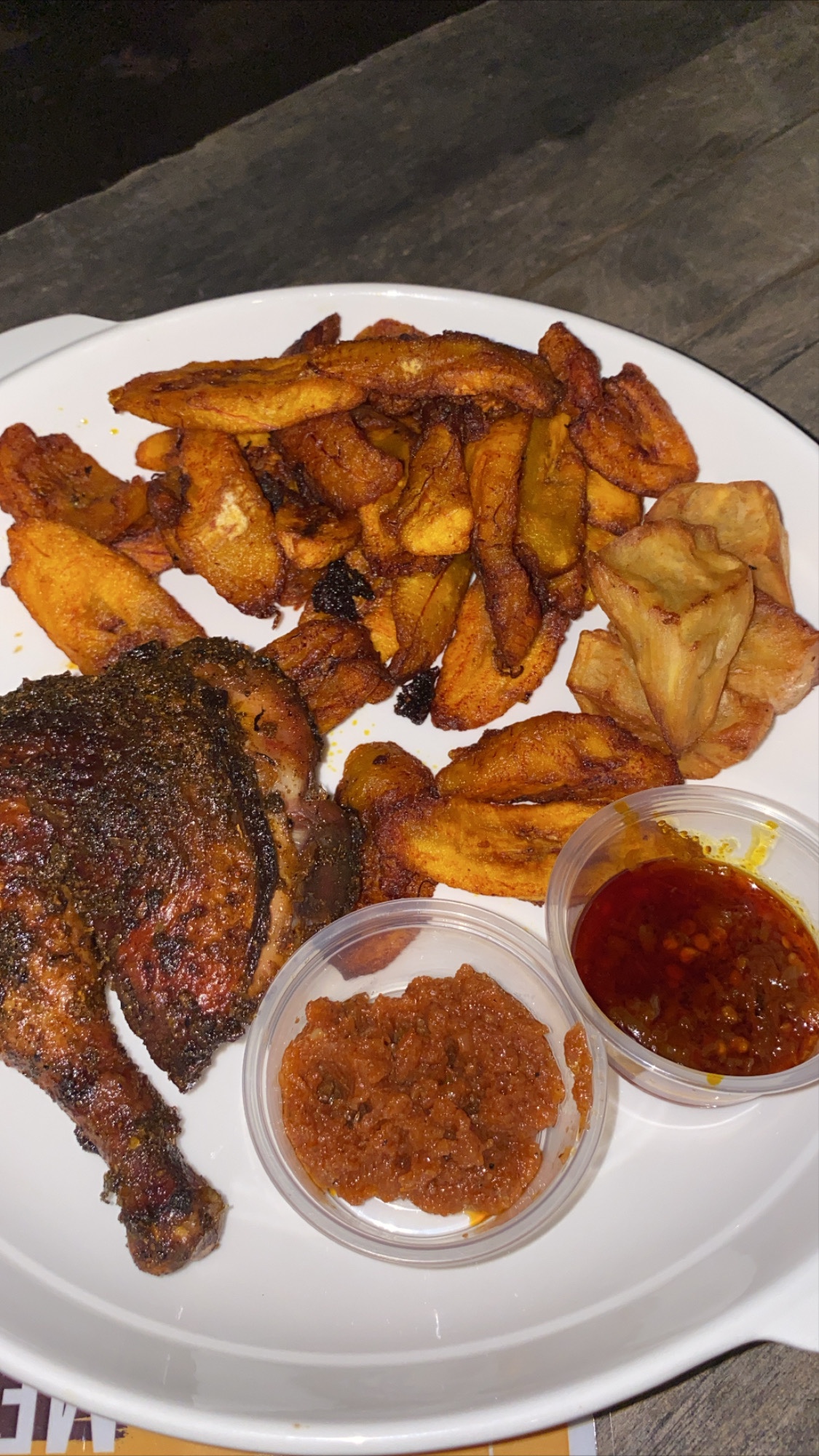 J’ai une confession à vous faire, je ne suis pas fan d’alloco huile rouge à la base car je trouve que le goût de l’huile de palme est trop prononcé et dénature celui de la banane( ce n est que mon humble avis) donc je ne saurais être la meilleure juge pour ce plat par contre j’ai énormément apprécié le poulet fumé qui était délicieux.