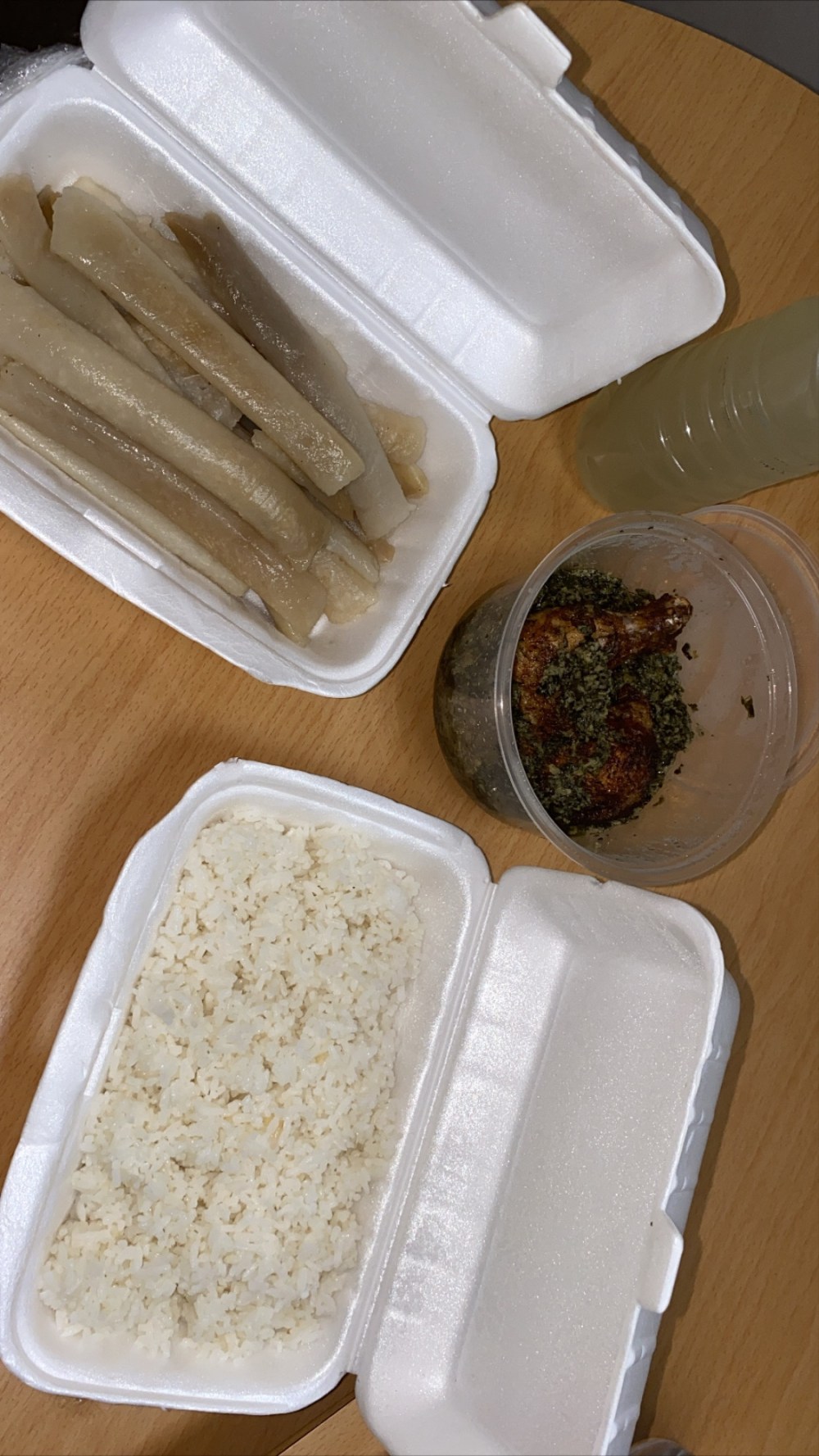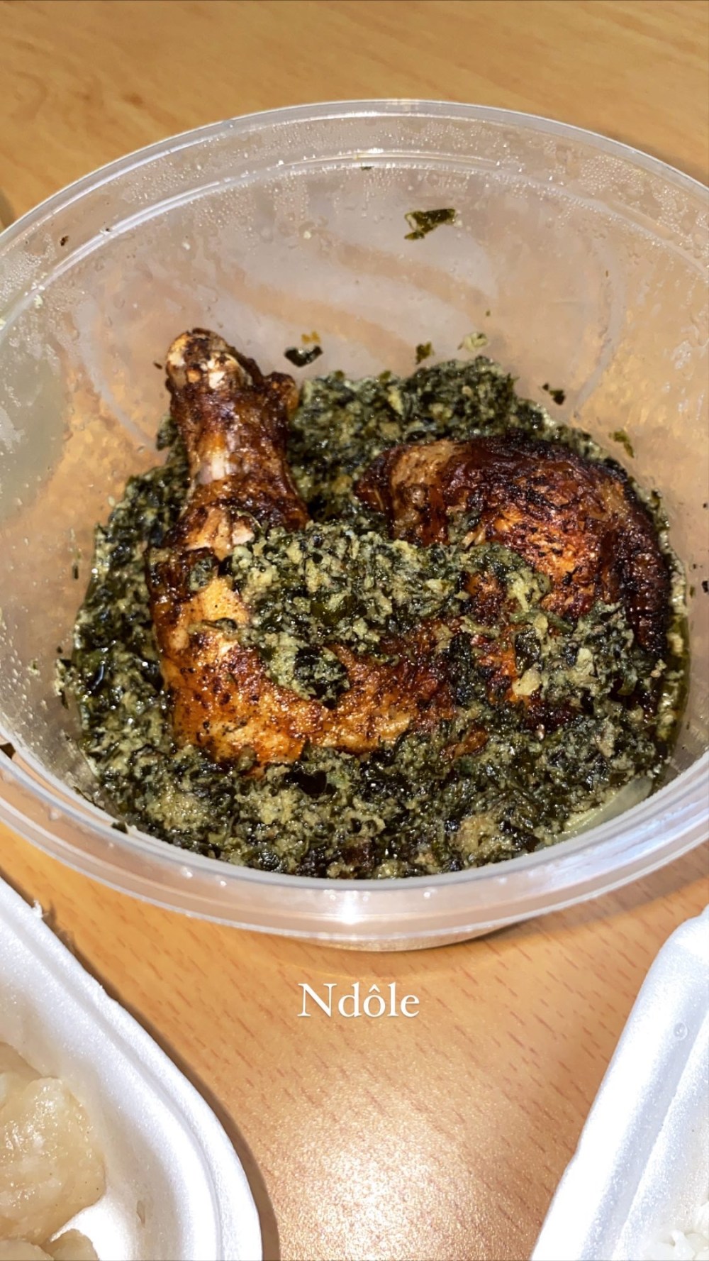 En parcourant la galerie de l’application glovo,je suis tombée sur une adresse appelée la camerounaise qui proposait du N’dolè ainsi que d’autres plats typiques du Cameroun; Faut savoir que je suis super fan de ce plat à base de sauce feuille avec du poisson émietté que l’on accompagne de bâton de manioc plus communément appelé « miondô ».