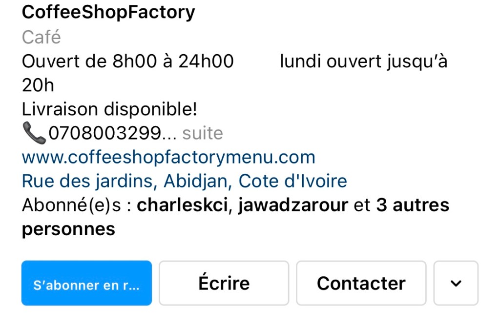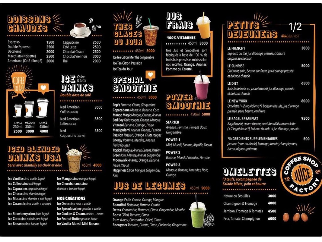 Petit nouveau sur la rue des jardins, Le Coffee shop factory est comme son nom l’indique un Coffee shop qui propose, bien entendu du café mais également plusieurs déclinaisons de celui ci,comme des frapucinno( café frappé avec de la glace pilée) et aussi des smoothies, jus de fruits, sandwichs et des pâtisseries.