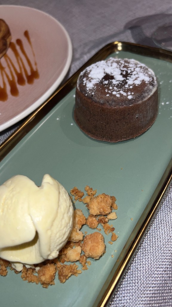 En dessert, j’ai pris un mi-cuit au chocolat qui était très farineux, flop!