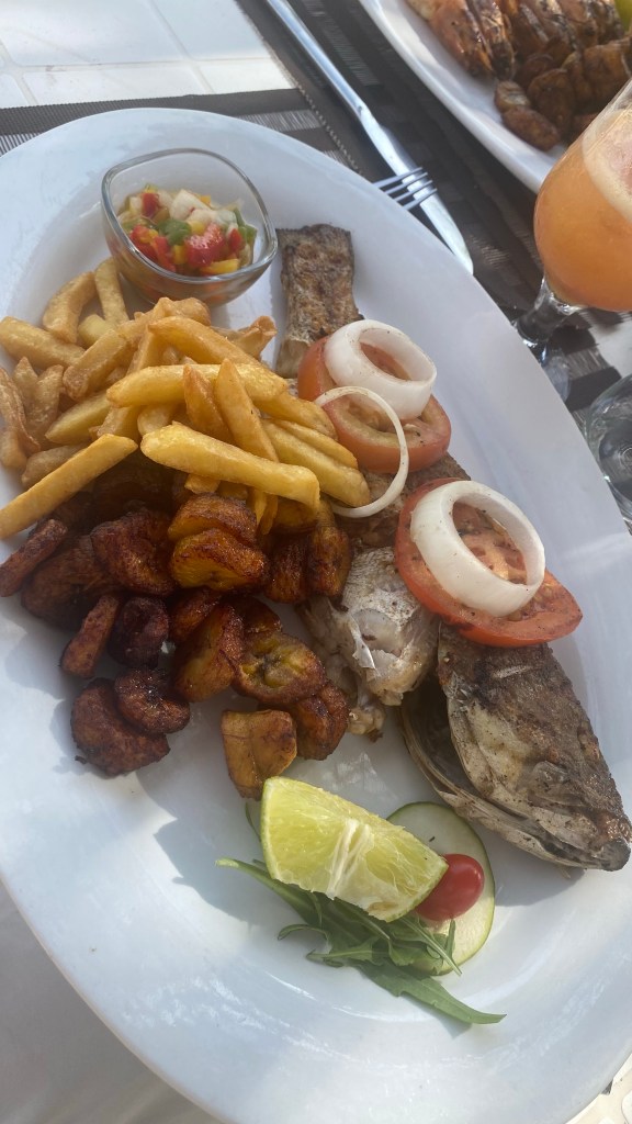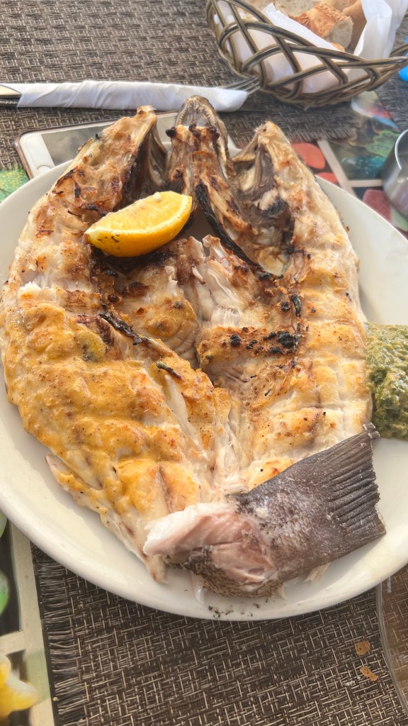 Situé à quelques mètres de l’embarcadère pour L’île de Gorée, cette adresse propose des plats à base de poisson frais ainsi que des plats libanais. J’ai donc pris un mix des deux;