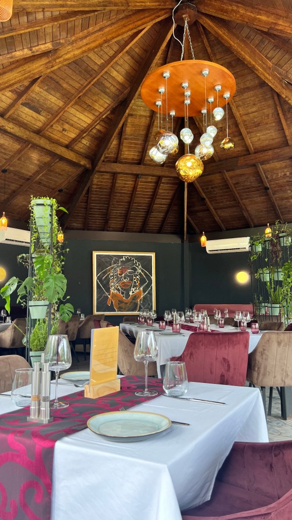 Le restaurant dispose de plusieurs espaces, dont un magnifique jardin avec piscine, idéal pour prendre un verre; A ce sujet ils proposent à leur carte des bières locales plutôt originales.