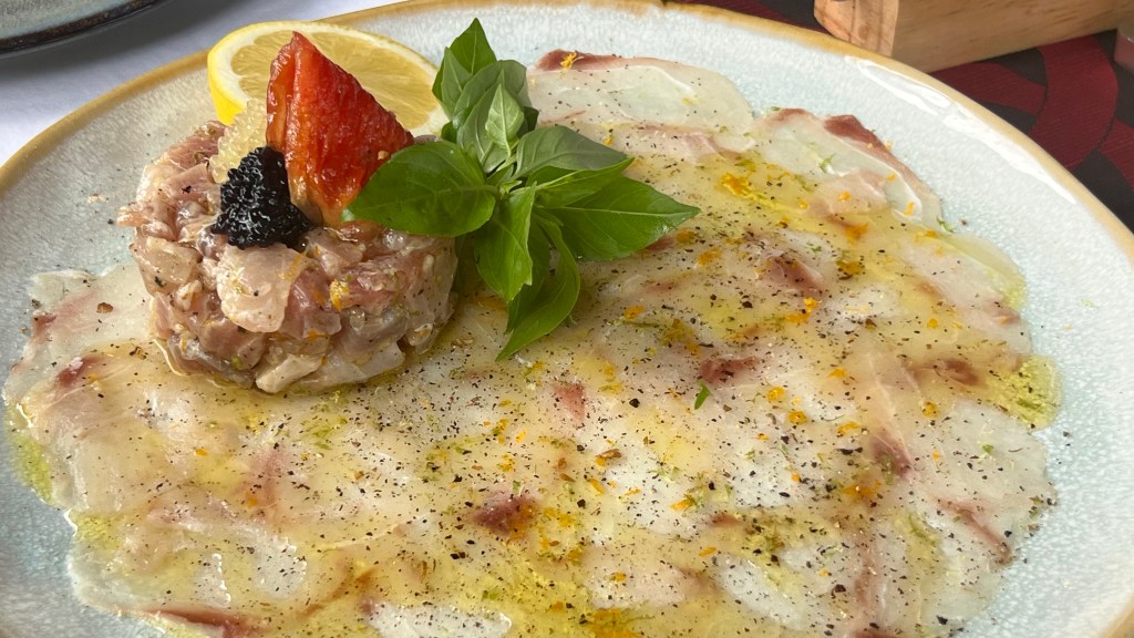 J’ai également testé leur assiette de poissons crus, composée de tartare de thon/ mérou et d’un carpaccio de mérou, qui était bonne mais manquait d’assaisonnement de base ( il faut donc en rajouter soi même).